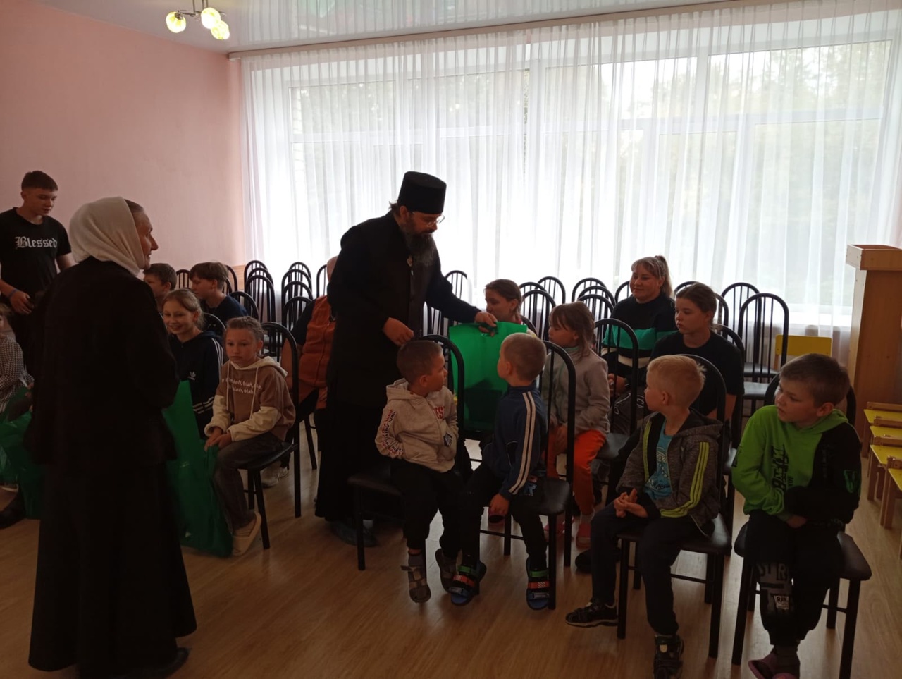 Отец Василиск провел интереснейшую беседу с ребятами, помогая каждому ребенку почувствовать себя важным и услышанным. Дети получили возможность задать отцу Василиску любые интересующие их вопросы и услышать искренние ответы, полные христианской любви и заботы.